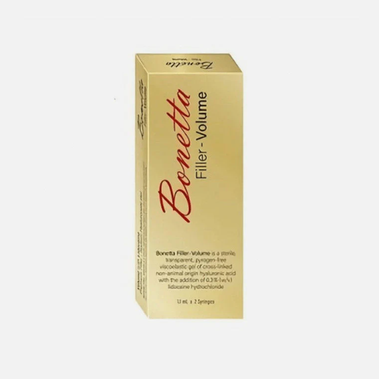 Bonetta is a cross-linked filler based on hyaluronic acid (HA). The low injection force of the HA gel ensures even and painless distribution of the filler during injection. The high degree of HA cross-linking in Bonetta ensures long-lasting wrinkle correction effect.